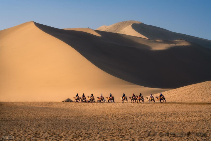 ·鸣沙山早晨骑骆驼,看沙海日出,傍晚滑沙听鸣沙回响,夜不雅大漠星空