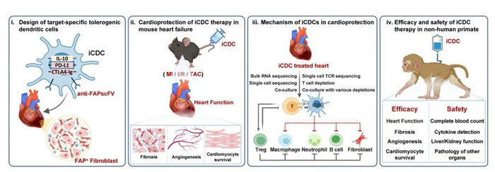 “利用iCDC作念免疫调控,在行家尚属初度,这一‘颠覆级’见地创新具有清雅无比的临床应用远景。”胡新央锻真金不怕火先容,最初,靶向精确,初度收场了对受损腹黑的精确免疫换取。通过将工程化DC细胞定向寄递至毁伤局部,作用于腹黑病灶,阴私全身免疫阻扰带来的感染等风险。其次,效果抓久。再行均衡毁伤性与建立性免疫反映,建立相识、可抓续的“免疫耐受环境”。在包括缺血再老成、心肌梗死及压力超负荷等多种小鼠疾病模子中,该疗法均权贵减少了腹黑纤维化,改善了局部血流老成,并灵验晋升了腹黑的疲塌功能、提高了生计率。另外,远景普遍。令东说念主饱读励的是,该疗法的灵验性与安全性在非东说念主灵长类动物心肌梗死模子中也得到了充分考证。这一效用设置了病灶靶向免疫调控当作舍弃腹黑纤维化的可行计谋,为临了期心衰的调整开辟了具有远景的“免疫靶向”新旅途。