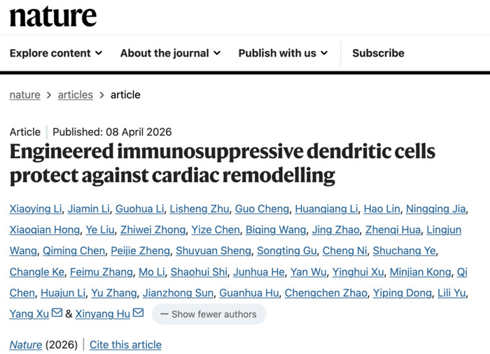 当行家约6400万心衰患者还在与病魔苦苦反水时,一项来自浙江大学医学院附属第二病院(简称浙大二院)的结巴性原创探究,正在改写心衰疾病的调整时势。北京时间4月8日半夜,经血管植入器械宇宙要点实践室副主任、浙大二院心血管内科胡新央锻真金不怕火团队,浙江宽腹黑功能重建要点实践室主任、浙大二院徐洋锻真金不怕火团队的“工程化树突状细胞指令免疫耐受改善心力缺少腹黑重塑”首要探究效用,发表于行家顶刊杂志《当然》(Nature)上。