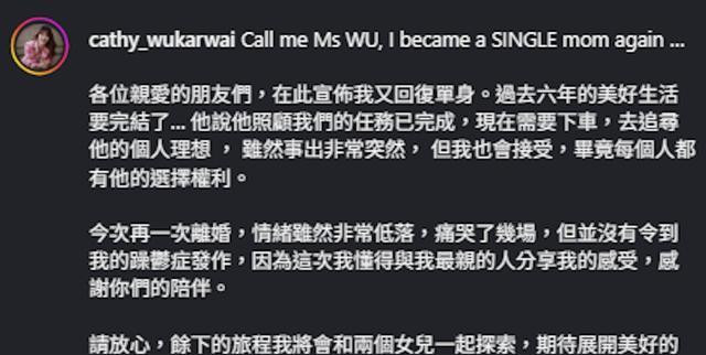 感情这块,她没少吃苦。头胎还在肚子里,二胎刚怀上,前夫出轨。她挺着肚子去产检,回来对着马桶吐完哭,哭完查资料,产后确诊躁郁症。2018年签字离婚,带走俩女儿,没开记者会,只说一句:“孩子先睡好,我再说别的。”