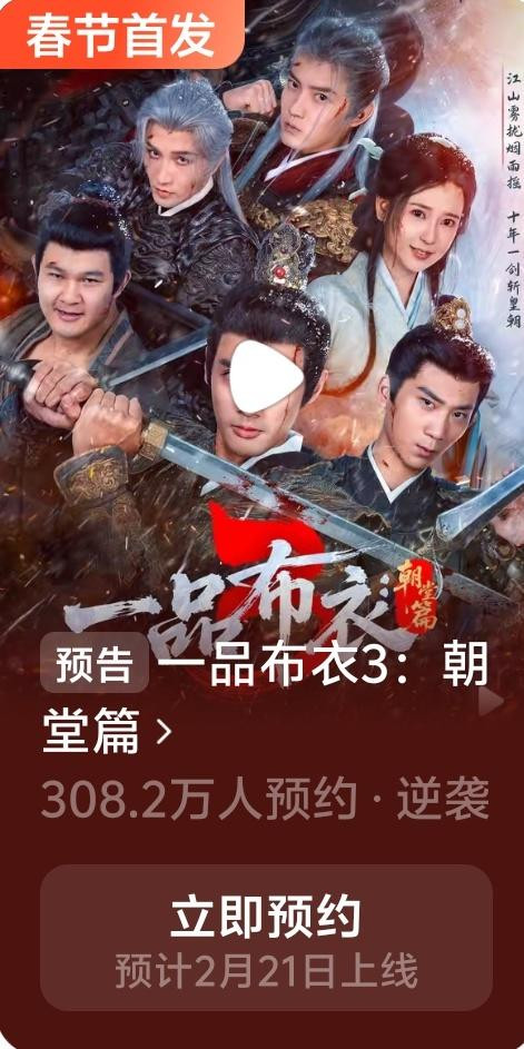 热度破亿的轻笑剧《穿书大族妯娌,我和闺蜜皆上阵》第三部重磅上线,新作延续反套路叙事立场,以闺蜜双穿与“配景板帅哥”的新颖设定捏续为不雅众带来欢娱;《太奶奶4》红果预约量已破千万,其前三部作品在红果总播放量超70亿,新作将连接以“年青肉体与陈旧灵魂”的反差东谈主设,敷陈对于亲情、成长与背负的和气故事;霸术题材短剧《一品布衣3:朝堂篇》四肢口碑爆款,预约量已破300万,新作延续电影级的镜头言语,敷陈土木匠程师穿越后应用当代机灵绝境求生的故事,在历史的幽闲感中精细描摹个东谈主抉择与群像百态;《天下等一纨绔2》则以极具反差感的主角东谈主设,将个东谈主恩仇与家国大义相纠合,指挥不雅众与主角一皆在新年完毕“迎风翻盘”。