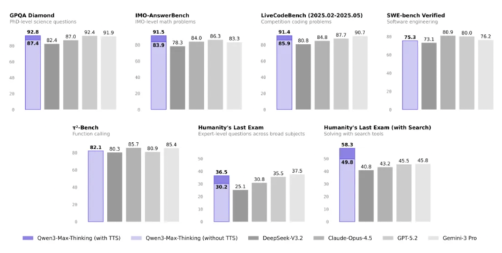 针对Qwen3-Max-Thinking的更多性能评估 图片来源:千问