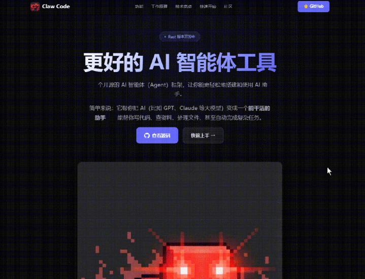 抵制,这是真有点帅了,完好意思的渐变蓝,还放了仓库里的logo,往下滑还有渐入的动效,致使还贴心性作念了去往 GitHub 的跳转。