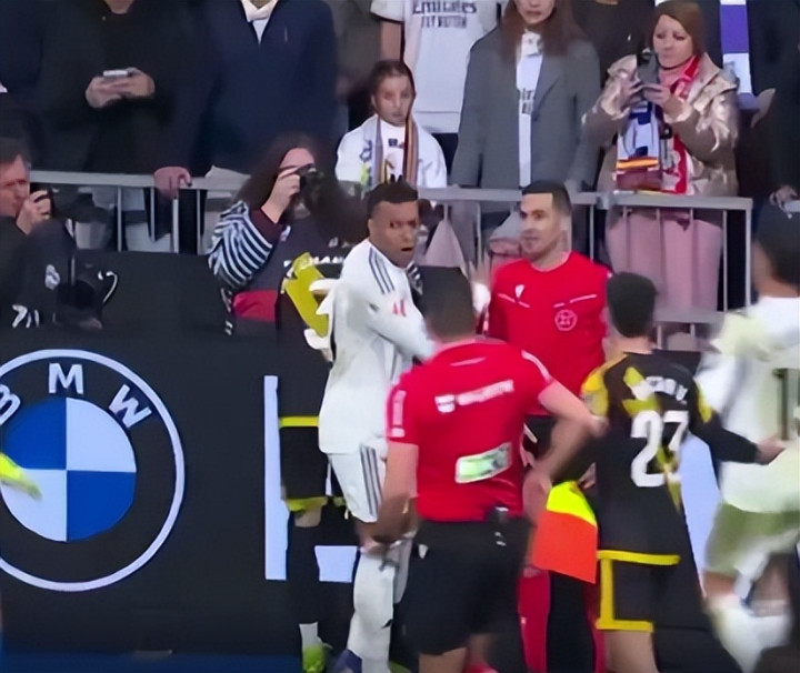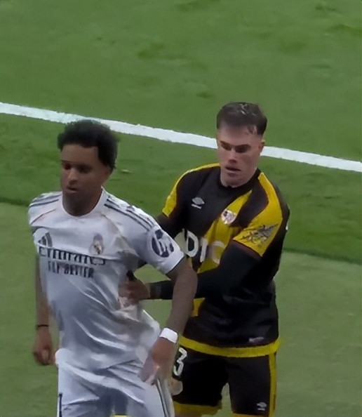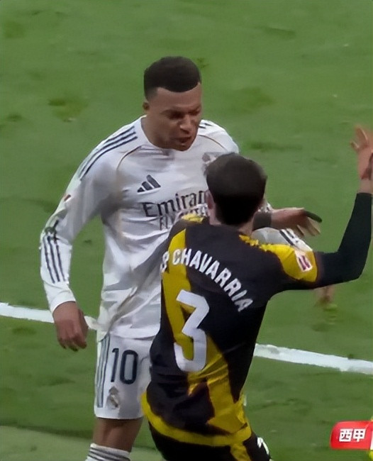 补时阶段,第 90+8 分钟,罗德里戈沿边线突破时被巴列卡诺的查瓦利亚身后推搡,身体撞向场边广告牌。姆巴佩瞬间冲至冲突点,与查瓦利亚正面言语对峙并伴轻微肢体接触,明确表达不满,队友随即围拢支援。