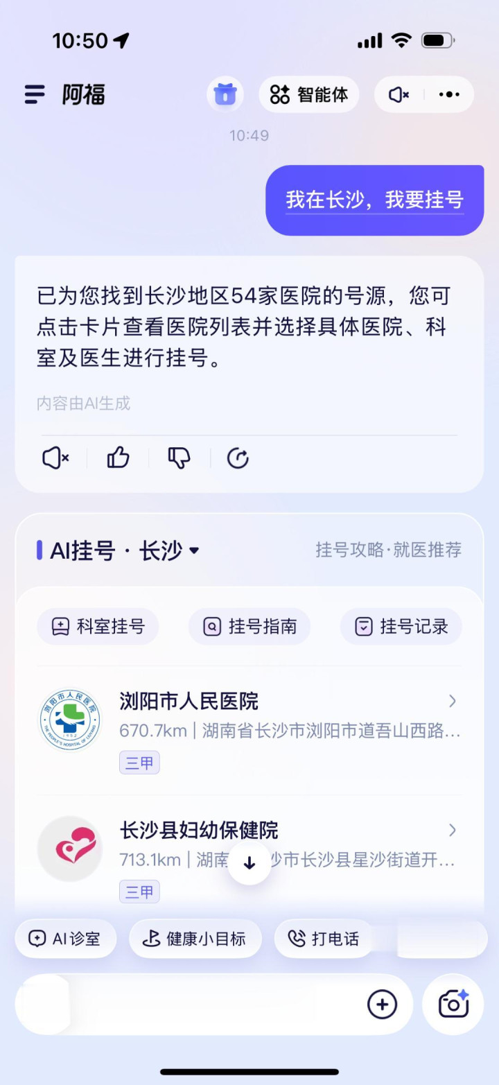 并且它不光能答疑,还颖异实事。查完躯壳情况,若是真需要去病院,它连通了宇宙 5000 多家病院,能径直帮你调医保码、挂号、缴费。
