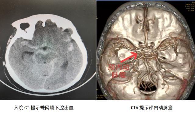 住院后,嘉禾县中医病院急诊科立即运转卒中绿色通谈。颅脑CT及CTA搜检教导:蛛网膜下腔出血,病因明确为颅内动脉瘤离散。该病被医师称为大脑的“不定时炸弹”,初次离散牺牲率跨越30%。