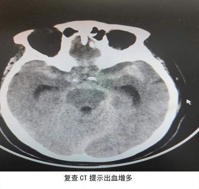 然则,家属一度耽搁,对峙转往上司病院。就在调换时刻,患者斯须堕入浅晕厥。紧迫复查CT线路:动脉瘤二次离散,颅内出血显然增加。
