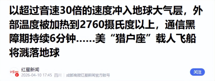 - lol外围投注 危机6分钟! 飞船穿火海断联, 4东谈主抱团硬扛回家, NASA称: 很安全2026-04-12